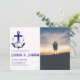 Nautical anchor and monogram framed by a lightened version of patriotic florals: white rose, blush pink peony and light blue. Preppy pink and white stripes for a summer, beach, or destination wedding event. Photo template via Pixabay licensed under CC0 and must be replaced with your own photo.