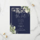 This elegant navy blue greenery floral string lights save-the-date invitation can be personalized with your information in chic typography, with your wedding website QR code and details on the reverse. Designed by Thisisnotme©