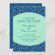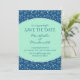 Maneira elegante, moderna e na moda para fazer um de seus anúncios mais importantes. Este convite SAVE THE DATE está em um esquema moderno de cor NEO MINT e CLASSIC BLUE com fundo de impressão floral. O verso das Escrituras vem de Mark 10:8. O inverso é um plano de fundo AZUL CLÁSSICO com um padrão sutil dizendo SAVE THE DATE in NEO MINT. Personalize seus detalhes na frente. Itens correspondentes disponíveis.
