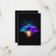 Voz mecânica, antiga, com lâmpada e asas finas brilha cor de laranja, roxo, turquesa sobre fundo preto. Estilo Steampunk.