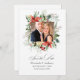 Este encantador cartão de foto "save the date" apresenta um design em aquarela de pinheiros e abetos cobertos de neve, lindamente acentuados com azevinho e frutos vermelhos, evocando um sonhado casamento em uma floresta de inverno. Perfeito para casais que planejam uma celebração com tema de Natal ou feriado, este cartão captura o charme e a elegância da época. Com espaço para incluir sua foto favorita, este cartão é uma maneira memorável e pessoal de anunciar seu grande dia com estilo.