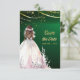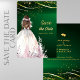 Celebre a sua história de amor com este elegante Cartão de Save the Date para Noiva Afro-Americana em Dourado e Verde. Com um design deslumbrante com uma ilustração radiante da noiva, detalhes em dourado e toques de verde exuberante, este cartão define perfeitamente o tom do seu dia especial. Ideal para casamentos modernos com um tema sofisticado e atemporal, é uma maneira linda de fazer com que os seus convidados marquem a data em suas agendas. Personalize-o com os detalhes do seu casamento para torná-lo exclusivamente seu!