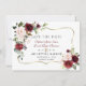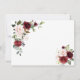 Desenho de cartão elegante com flores de água-marinha cor de blush burgundy e folhas verdes, uma moldura dourada falsa, divisor floral, em um fundo branco. No verso, os mesmos buquês de flores. Use a ferramenta Personalizar para adicionar suas informações, alterar fontes e cores das fontes. Para itens correspondentes, visite minha Coleção de Flores Blush Burgundy.
