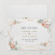 Desenho de cartão elegante com greenery arejado aquarela, flores rosa poeira e brancas, moldura dourada falsa, em um fundo de papel aquarela branco falso. Use a ferramenta Personalizar para adicionar suas informações. Para itens correspondentes, visite minha Coleção de Flores Rosa Poeira.