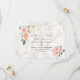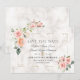Desenho de cartão elegante com flores cor-de-rosa creme em aquarela e folhas verdes, uma moldura quebrada com brilho dourado falso, divisor floral, em um fundo de mármore branco creme. No verso, o mesmo buquê de flores no mesmo fundo de mármore. Use a ferramenta Personalizar para adicionar suas informações, alterar as fontes e as cores das fontes. Para itens correspondentes, visite minha Coleção de Molduras Florais em Aquarela Dourada.