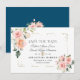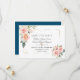 Desenho de cartão elegante com flores cor de creme em aquarela e folhas verdes, uma moldura quebrada com brilho dourado falso, divisor floral, em um fundo branco. No verso, os mesmos buquês de flores em um fundo azul oceano. Use a ferramenta Personalizar para adicionar suas informações, alterar as fontes e as cores das fontes. Para itens correspondentes, visite minha Coleção de Molduras Douradas com Flores em Aquarela.