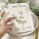 Anuncie seu dia especial com este elegante cartão de save the date de casamento com folhagem de eucalipto. Com folhas de eucalipto em aquarela suave e fontes de caligrafia moderna, este design incorpora simplicidade e beleza natural. Perfeito para casamentos com tema botânico, rústico ou minimalista, ele define o tom da sua celebração com sofisticação atemporal. Totalmente personalizável com os detalhes do seu casamento, este cartão de save the date garante que seus convidados marquem suas agendas com estilo.