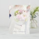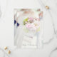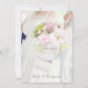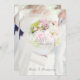 Design de casamento adorável e editável com um lindo casal de noivos, segurando um buquê de flores frescas ao fundo.