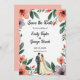 Esta elegante floral de aquarela salva o convite de data é perfeito para um casamento moderno. A design romântica apresenta uma elegante estrutura floral de aquarela com uma ilustração noiva e noiva e caligrafia preta sobre fundo branco.