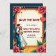 Este elegante estilo de banda desenhada, para salvar o convite de data é perfeito para um casamento moderno. O design retro apresenta uma ilustração vintage noiva e noiva e caligrafia preta em um fundo com o tema dos quadrinhos.