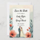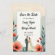 Esta elegante floral de aquarela salva o convite de data é perfeito para um casamento moderno. A design romântica apresenta uma elegante estrutura floral de aquarela com uma ilustração noiva e noiva e caligrafia preta sobre fundo branco.