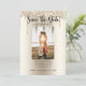 Uma foto salva o cartão de data para casamentos. Adicione sua foto e seus nomes e data de casamento, juntamente com a cidade e o estado. O plano de fundo é o brilho da tendência.
