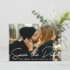 Parabéns no seu noivado. Anuncie sua notícia especial e data de casamento usando este moderno e na moda, salve a data do casamento. Personalize com sua foto, nomes e data de casamento.