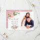 Cartões de foto de noivado com rosa bege e dourado rosa com água de rosas em aquarela com sotaques de verde sálvia.