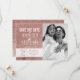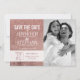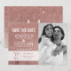 Elegante, feminino, simples e moderno cartão de noivado com impressão em folha de ouro rosa e brilho, Cartão de Save-the-Date. Este design clássico e sofisticado é perfeito para o casal moderno e elegante. Personalize com sua própria mensagem na frente, bem como um monograma inicial personalizado no verso. Todo o design é impressão fotográfica.
