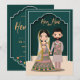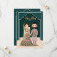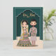 Convite de casamento cartão do casal de noivos fofo em traje tradicional indiano personagem de desenho animado