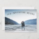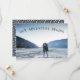 Um rústico salvará o cartão com fotos de data para o casal de periferia e aventureiro, projetado para acomodar sua foto favorita de noivado de sangramento de cheio horizontal ou orientada a paisagem. "Nossa Aventura Começa" aparece como uma camada de tipografia negra, ao longo do topo, com seus nomes, data de casamento e local do casamento embaixo. Cartões que se revertem para um padrão opcional de minúsculas pinheiros em um fundo cinza azul.