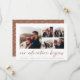 Um moderno e empolgante cartão de data para o casal de espírito aventura, este design simples e limpo apresenta cinco fotos quadradas em um layout de colagem em grade, com "nossa aventura começa" acima em um guião com letras de mão à direita em terracota terrestre. Personalize com seu anúncio, nomes e detalhes adicionais na parte inferior e adicione mais (como seu site de casamento) na parte de trás.
