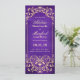 Esses elegantes anúncios de save the date, em tons impressionantes de dourado pálido resplandecente e roxo berinjela suntuoso, são uma mistura de bom gosto das sensibilidades Art Nouveau e Vitorianas, com uma moldura sofisticada de belos redemoinhos e delicados ornamentos, e texto em fontes clássicas serif e block. O texto de resposta do casamento é completamente personalizável. Personalize o verso com a data de resposta.