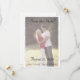 Design front features the photo you supply displayed against a white background. The semi-transparent effect helps to create the appearance of fine elegance. Heading, date, names and city are all displayed in a dark silver-colored Nuptial font. Photo is bordered with a flourish.