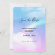 Salve o cartão de data com uma imagem de fundo suave e adorável. Pastel blues e pinks nuvens e um arco-íris mágico.