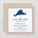 Guarde o Anúncio de Casamento de Data para o seu casamento em Cape Cod. Mapa do Vineyard de Martha com coração sobre Edgartown. Cores em Pyrite, Marinho Azul e Borda Rosa Brilhante e coração. Se o esquema de cores não é o que você queria, por favor me avise e eu recriarei isso para você, mas por favor, entre em contato comigo antes de fazer um pedido. E-mail paula@labellarue.com Feliz Planejamento de Casamentos! Certifique-se de escolher seu estoque de papelão favorito para que ele seja impresso.