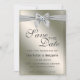 Elegante Silver Ribbon & Gemstone Save A Data apresenta fundo brilhante prateado, arco prateado, uma pedra prateada cintilante e um modelo de texto moderno. O lado traseiro da placa tem um nome modelo. Um design perfeito que irá combinar a decoração do casamento como o tema moderno, romântico e de luxo.Clique no botão personalizar para personalizá-lo com o seu próprio texto.
