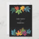 Esta design do cartão de casamento apresenta um arranjo impressionante de folhas coloridas do outono, reproduzidas no estilo minimalista contra um fundo negro sólido. As folhas, em tons de verde, laranja, amarelo, azul e roxo, estão dispersas artificialmente em dois clusters — um no topo e outro no fundo do cartão — criando um quadro natural para o texto. As cores vibrantes das folhas acrescentam uma sensação viva e comemorativa à carta, enquanto o fundo preto lhe dá um toque elegante e moderno. Esta design é perfeita para um casamento com temas de outono, oferecendo uma mistura de beleza da natureza com elementos design contemporâneos. Personalize o cartão com seus nomes e detalhes do casamento. Você pode baixar a placa para seu dispositivo móvel ou computador. O cartão foi criado com a ajuda do ai.
