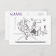Ilustração humorística de save the date, onde o homem é rejeitado pelo pai da mulher.