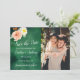 Esta coleção apresenta um fundo verde esmeralda moderno com tipografia de tendências e sotaques florais. Personalize facilmente o design com sua redação para tornar esses cartões salve a data totalmente exclusivos do seu dia especial.