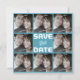 Um convite de data salvo com espaço para oito fotos separadas. Você pode adicionar todas as mesmas fotos ou 8 fotos individuais para personalizar este convite para salvar a data.
