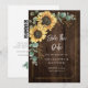 Crie um save the date floral de girassol moderno com este anúncio moderno com belo buquê floral rústico, geométrico com tipografia de roteiro.