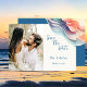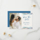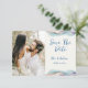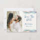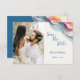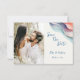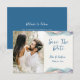 Um anúncio de casamento Save the Date com foto, projetado com acentos de cores abstratas e brilhantes. O texto da frente inclui: Save the Date, os primeiros nomes dos noivos e a data do casamento em um fundo branco. O verso inclui o texto: Detalhes a seguir e o site do seu casamento em um fundo azul correspondente com acento de cor abstrata. Para personalizar, basta inserir a foto do casal favorito no nosso modelo fácil, substituindo a imagem de amostra. Mova a foto para a esquerda e certifique-se de que ela cubra a área. Em seguida, insira os detalhes do seu texto no nosso modelo, substituindo a amostra. Certifique-se de ver toda a Coleção de Casamento Modern Abstract Color Wave para cartões e acessórios correspondentes. As cores do fundo podem ser alteradas usando nossa Ferramenta de Seleção de Cores.