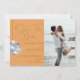 Marque a cena de uma celebração temática da Disco 1970. Laranja é a cor de fundo para este design de Casamento personalizado elegante de bola Disco floral. As cores florais retrorais também estão no design. Altere facilmente as informações para o seu próprio design personalizado. Altere a imagem do espaço reservado com a sua própria fotografia. Elegante design de casamento formal.