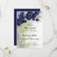 Convite elegante e artístico de Save the Date com uma deslumbrante flor de orquídea azul escuro em aquarela e respingos de cores verde e azul escuro ao fundo.