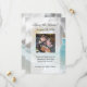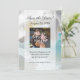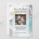 Design refrescante e sofisticado apresenta uma cena da costa do oceano azul aqua turquesa com ondas brancas batendo na costa. Água azul clara e fresca e areia branca com céu azul e nuvens brancas fofas. Em primeiro plano, uma bela flor de orquídea branca em close-up de alta qualidade. Esta imagem zen serena e tranquila é perfeita para um casamento na praia, ou evento especial temático de viagem de férias em resort de spa ou ocasião de negócios. Relaxe enquanto recebe uma massagem, manicure ou pedicure de spa no salão. Desfrute relaxamento e paz à beira da praia e costa do oceano. Todos os Designs Copyright © 2012 www.CustomInvitesOnline.com