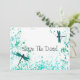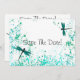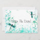 Este Dragonflies de Teal Salva a Data apresenta libélulas em um fundo de decapagem. Excelente para Casamentos Teais ou Casamentos de Verão. Procure por Convites de Casamento e RSVP de Recepção.