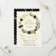 Flores negras e douradas com algumas folhas em quadros geométricos sobre fundo de mármore branco e dourado salvam o cartão de data. Simula-se o brilho e a folha de alumínio