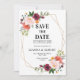 Cartão moderno de aviso de data de casamento com flores de outono em aquarela colorida, apresentando um buquê de rosas e dálias em tons de borgonha, marsala, rosa suave, rosa pastel, vermelho e laranja com folhas botânicas verdes exuberantes e folhagem de folhas de eucalipto. Com moldura geométrica com brilho dourado. Uma escolha de design moderno que é perfeita para casamentos temáticos de outono, primavera e verão. Encontre mais designs e variações correspondentes na minha loja "blissweddingpaperie". E sinta-se à vontade para entrar em contato comigo para personalização adicional ou itens correspondentes.
