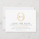 Foliage oval wreath of Foliage foto de casamento salve o cartão de data em branco, preto e dourado. Edite esta opção para salvar o cartão de data com seus próprios nomes e data de casamento em um lado e sua própria foto no sentido inverso. Outros itens correspondentes e opções de cor estão disponíveis. Folhas originais desenhando e design por Sarah Trett para www.mylittleedenweddings.com