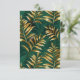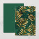 Padrão contínuo de ouro, jóias, ramos e folhas de samambaia brilhantes em um fundo verde texturizado de floresta. Samambaia dourada.