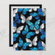 Borboletas realistas, azuis e brancas têm um padrão uniforme em fundo preto.