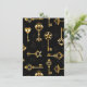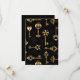 Padrão perfeito de chaves antigas, douradas e silhuetas em fundo preto.