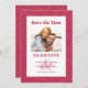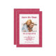 Adicione a sua foto personalizada à nossa tendência, salve a data do cartão de casamento fotográfico com um padrão moderno de folhas de abstrato num fundo vermelho magenta da moda. A caligrafia e o guião negros estão em vermelho magenta num fundo branco. Um modelo de tendência complementa o design de caligrafia único. Um modelo moderno para data e ano complementa o design único de caligrafia e os primeiros nomes do casal mostrados sobre um painel de coordenação. A parte traseira da placa repete o padrão de folha no fundo vermelho magenta. Personalize com sua foto de noivado favorita para anunciar seu grande dia! (Para melhor posicionamento da sua imagem, use uma ferramenta de edição de fotos para centralizar e cortar ANTES de carregar no site do Zazzle.) Certifique-se de ver o link de coleção nesta página para exibir todos os itens correspondentes! Envie perguntas ou solicitações personalizadas para invitationsuites@gmail.com.
