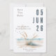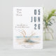 Aquarela ilustra aquarela de uma praia calma com erva pampa, aves voadoras e um oceano azul sobre o fundo. Calma e serena natureza perfeita para casamentos de verão, praia e destino. Números de encontro grandes que dão um layout graficamente interessante.