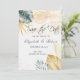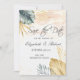Folhas de palma na abertura de cor d'água salve a data. Salve a data que pode ser personalizada com seu nome. Selecione o botão "personalizar" para alterar o estilo, a cor e o tamanho da fonte.