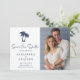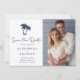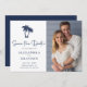 Casamento com Palm Tree Beach Salve a data - mostra sua foto favorita, palmeiras tropicais e tipografia moderna. Você pode personalizar facilmente nosso modelo Salvar a Data com seus detalhes.
