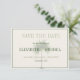 Casamento elegante da Palm Tree 'Salve a Data'. Uma palmeira elegante está sobre os nomes Noiva e Grooms em um fundo bronzeado. Elegante design de casamento formal moderno. A informação é facilmente alterada para a sua. O script moderno é facilmente alterado para suas próprias informações personalizadas. Um convite de casamento personalizado de uma suíte de papéis de carta de casamento em Belas Designs.