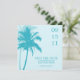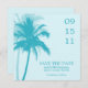 Anuncie seu noivado em estilo com este belo casamento, salve os anúncios de data, apresentando uma ilustração vetorial de duas palmeiras em combinações de cores de tendência perfeita para seu destino e casamentos tropicais de verão.