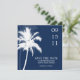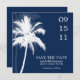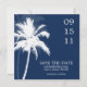 Anuncie seu noivado em estilo com este belo casamento, salve os anúncios de data, apresentando uma ilustração vetorial de duas palmeiras em combinações de cores de tendência perfeita para seu destino e casamentos tropicais de verão.